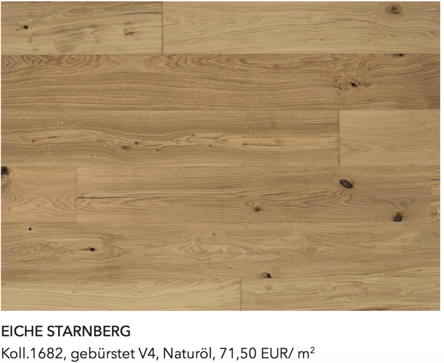 "Die Artikel Garmisch und Starnberg sind nicht ohne Grund seit Jahren unsere beliebesten Kährs Landhaus- dielen: Original Kährs-Qualität aus Schweden zu einem sehr fairen Preis. Auch die Eiche Hampshire mit ihrer matt lackierten und ungefasten Ober- fläche gehört schon lange zu den Klassikern."